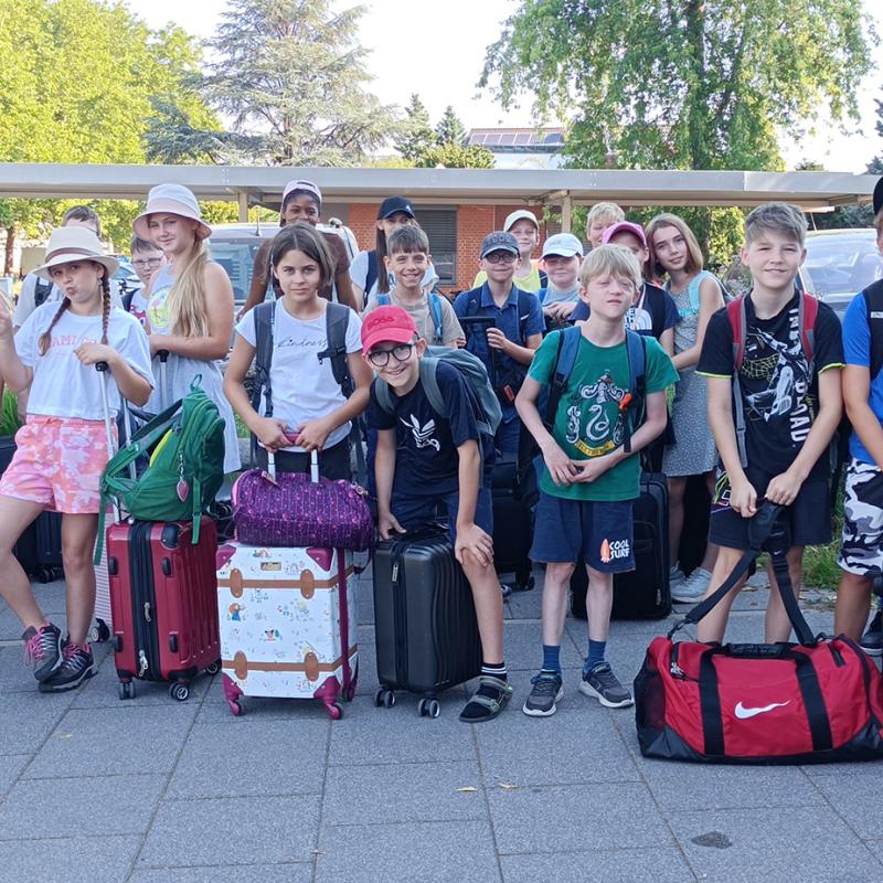 Nach der Ankunft in der Jugendherberge stärkten wir uns beim Mittagessen. Erholt und satt ging es dann für die Lerngruppen 5a und b ins Schwimmbad „Bademaxx“. Dank der Lernbegleiter:innen konnten wir uns bei den hohen Temperaturen mit Wassermelone abkühlen. Die blaue Rutsche im Schwimmbad machte allen Spaß.